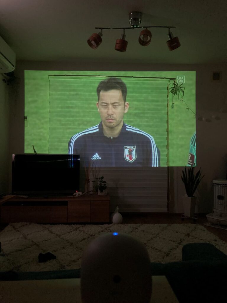 見てください、このサイズ感! 部屋の壁いっぱいに映像が映し出された瞬間、そこはもう映画館でした。